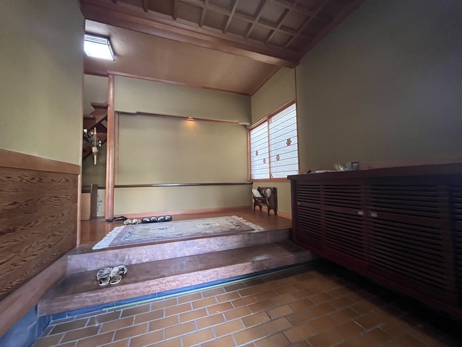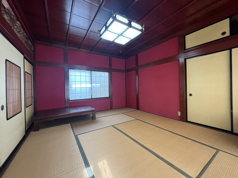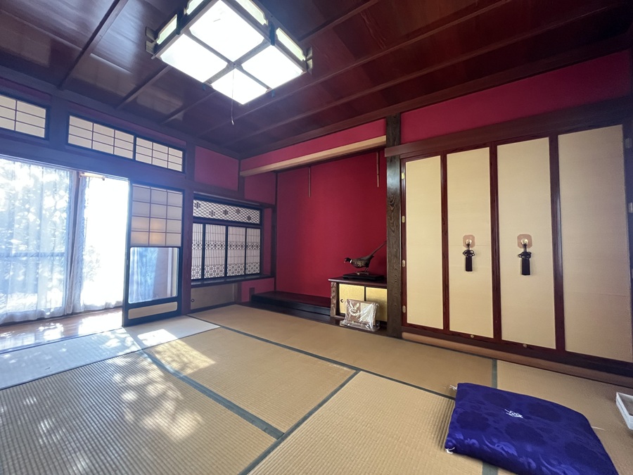 伝統的な欄間付き朱塗壁の和室がある住宅!二世帯も対応できる7LDK! 純和風住宅ですがLDK24.5帖にカウンターキッチンなど収納も豊富で暮らしやすく、家事動線も考えられた間取りです
